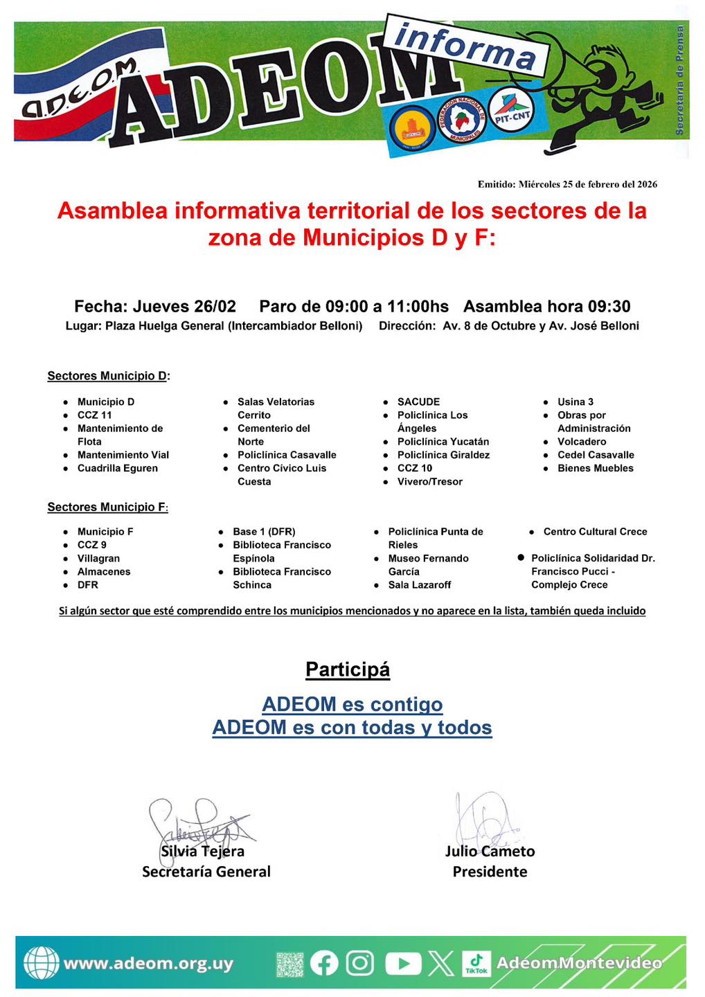 Asamblea informativa territorial de los sectores de la zona de Municipios D y F