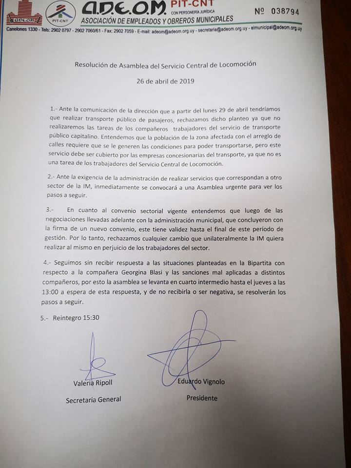 Mesa Ejecutiva informa: Paro de la División Limpieza para el 09/05