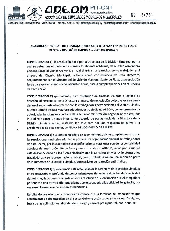 El día 8 de Marzo, adhiere a la paralización por el día de la mujer trabajadora. La medida será desde las 16:00 hasta la finalización de la jornada, y a su vez el sindicato avalará a todos los compañeros y compañeras que quieran paralizar 24 horas.