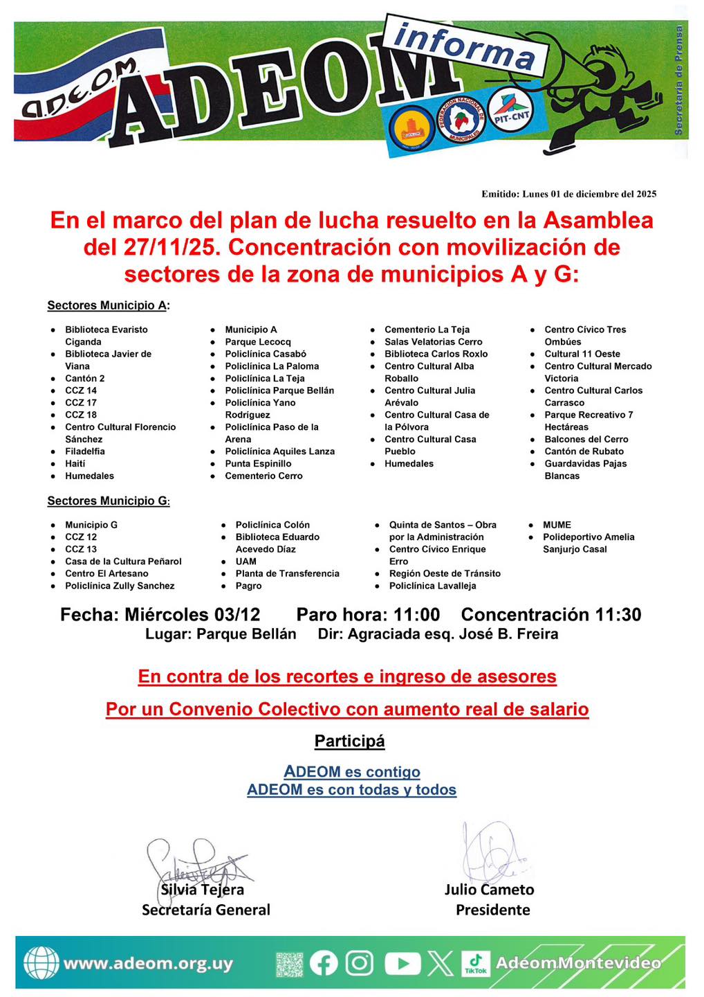 Ubicación: Cerro, Malvín, Cerrito de la Victoria, Paso Carrasco, Solymar, Las Piedras, Sayago, UAM.
