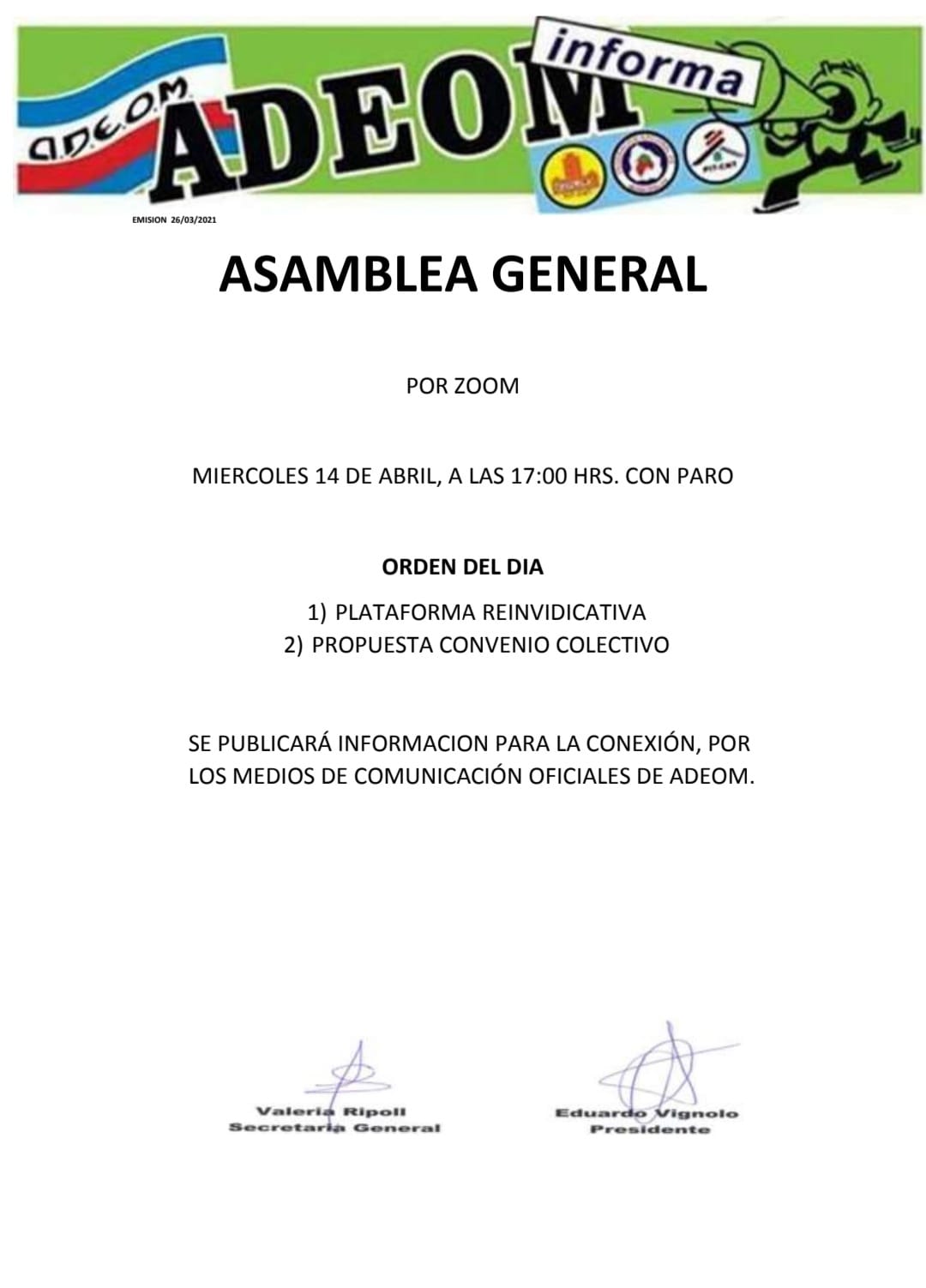 Asamblea General por Zoom – Miércoles 14 de abril – 17:00 horas