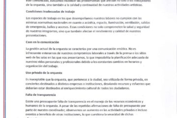 En respuesta a la nota de “El Observador” con fecha 15 de Junio del 2024 los compañeros de la Orquesta Filarmónica de Montevideo comunicamos