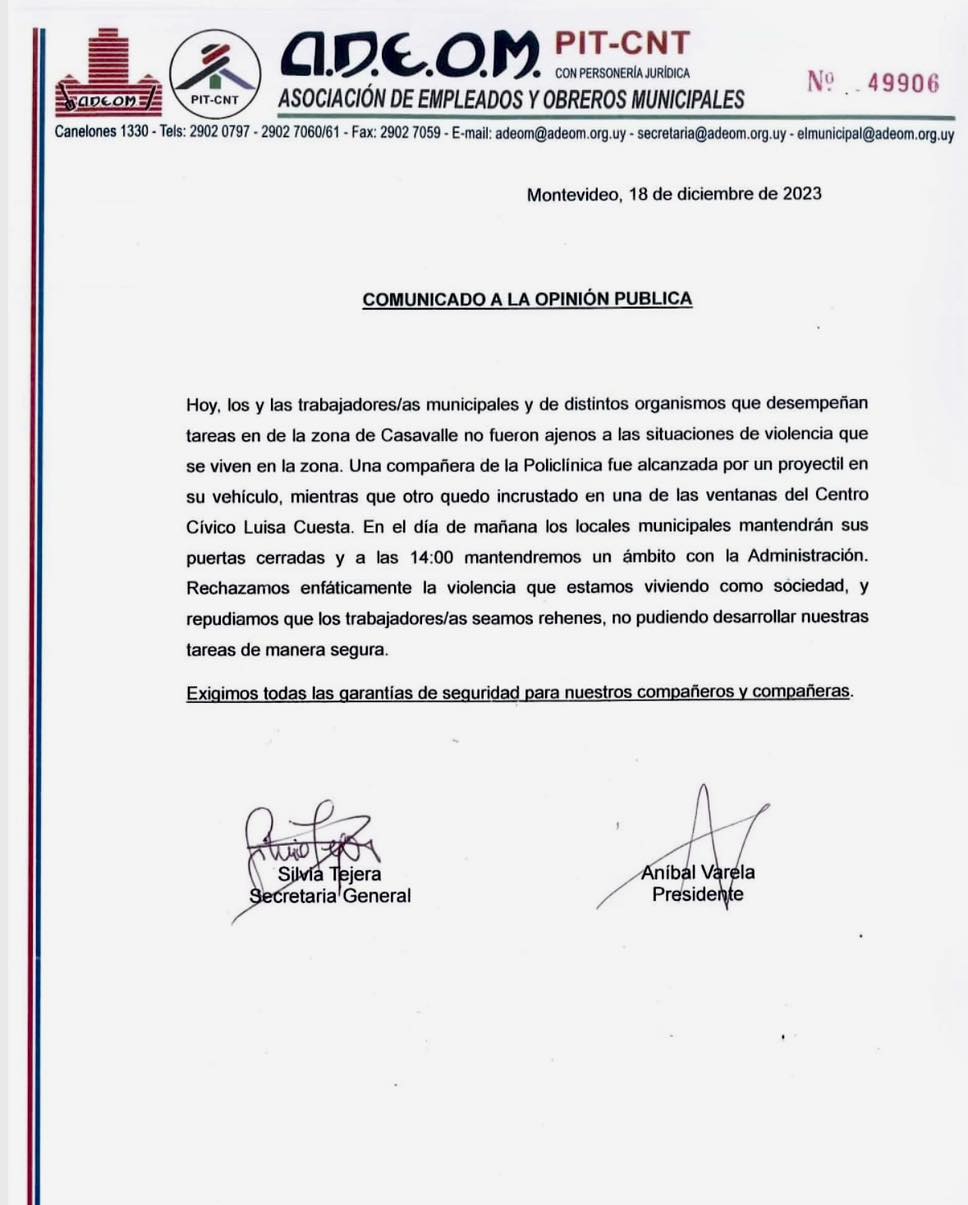 Comunicado a compañeros y compañeras de la División Limpieza y Playas y Necropsias