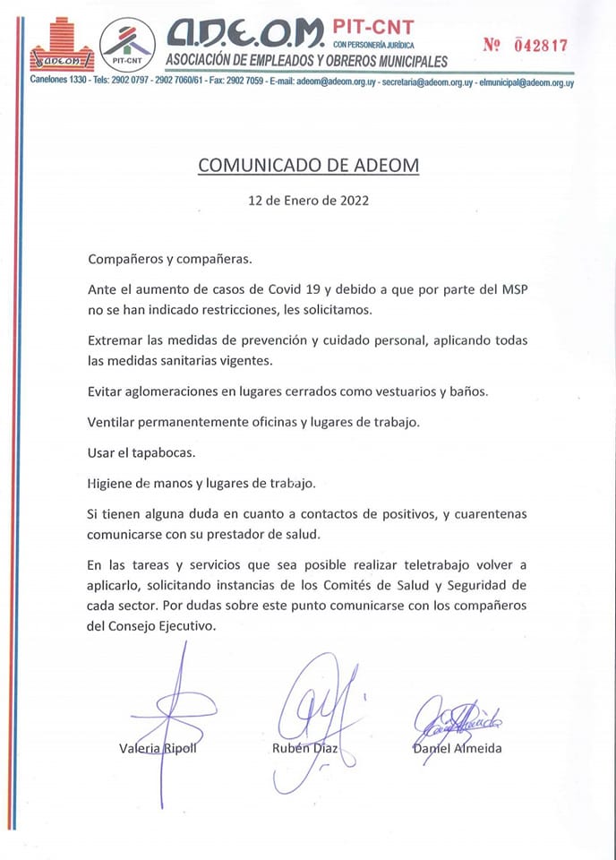 Comunicado de ADEOM a la población